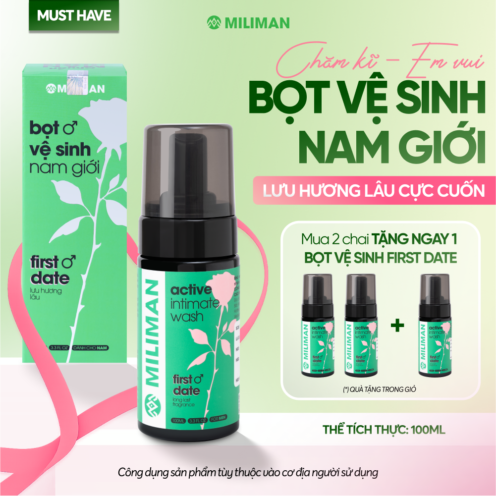 Bọt Vệ Sinh Nam MILIMAN First Date 100ML – Hương Dark Rose Cực Cuốn, Hỗ Trợ Lưu Hương Lâu, Làm Sạch Dịu Nhẹ Cho Vùng Nhạy Cảm | Mua 2 Tặng 1